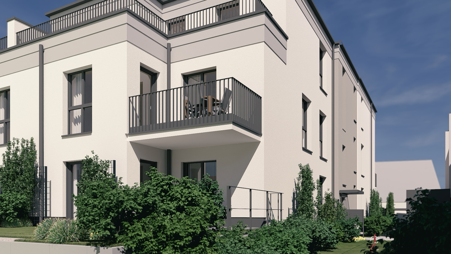 Um für die Zukunft gut gerüstet zu sein, werden die Gebäude mit einer sehr hohen Energieeffiziens im KFW-40-Standard erstellt.