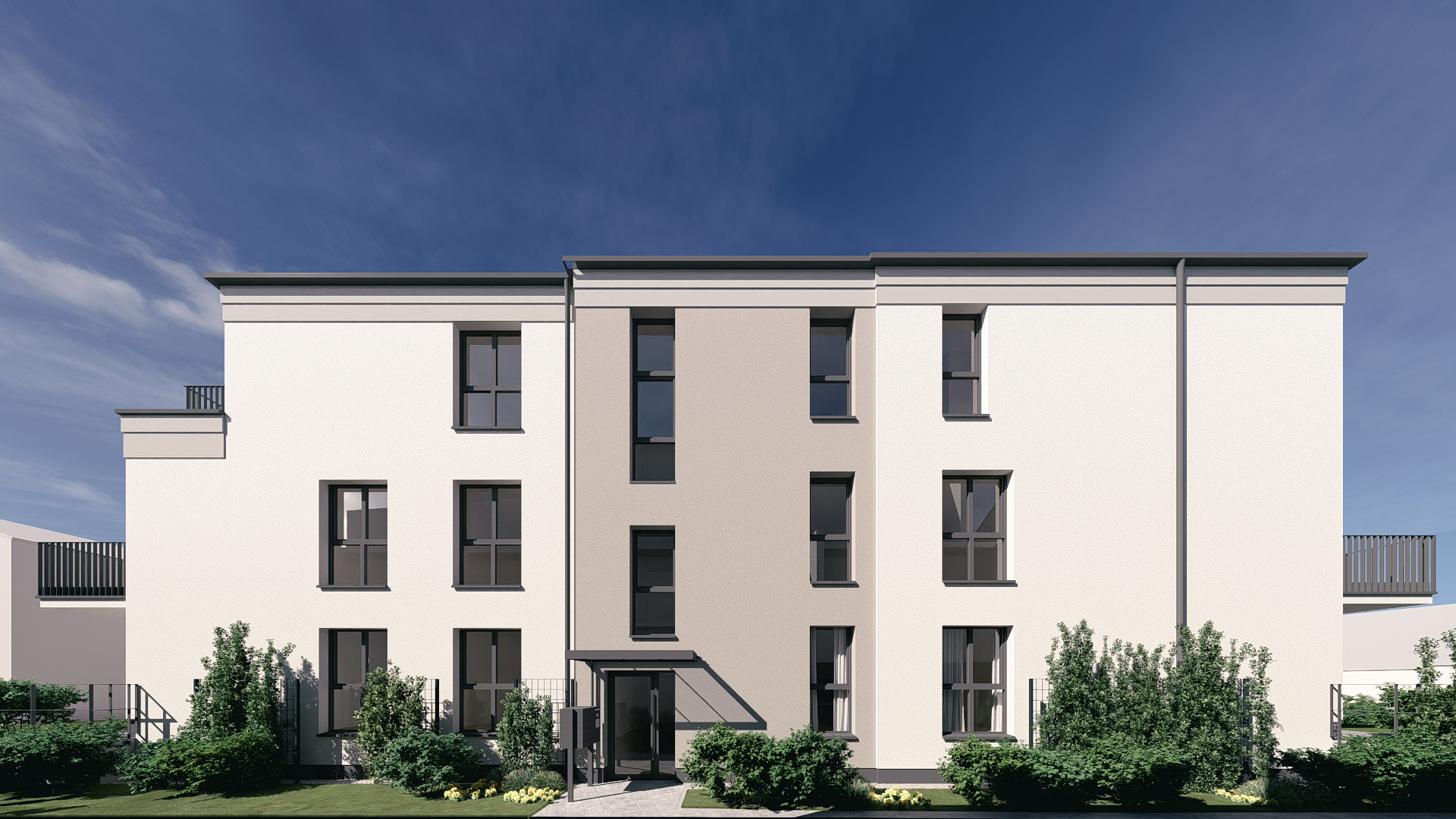 Das Torhaus wird aus zwei 3-Zimmer-Wohnungen mit einer jeweiligen Größe von 81 m² bestehen. Das sich dahinter erschließende Mehrfamilienhaus wird 2 sowie 3-Zimmer-Wohnungen bieten mit moderner Raumaufteilung bei 58 m² bis 86 m². Die insgesamt 16 Wohneinheiten mit 16 Tiefgaragen-Stellplätzen erhalten großzügige Fensterflächen, die für lichtdurchflutete Räume sorgen, sowie einen Balkon oder eine Terrasse, die zum Verweilen einlädt.